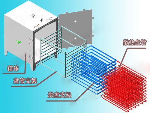 本機(jī)能在較低溫度下得到較高的干燥速率,熱量利用充分,適用于對(duì)熱敏性物料和含有容劑及需回收溶劑物料的干燥。在干燥前可進(jìn)行消毒處理,干燥過(guò)程中任何不純物無(wú)混入,本干燥器屬于靜態(tài)真空干燥器,故干燥物料的形體不會(huì)損壞。